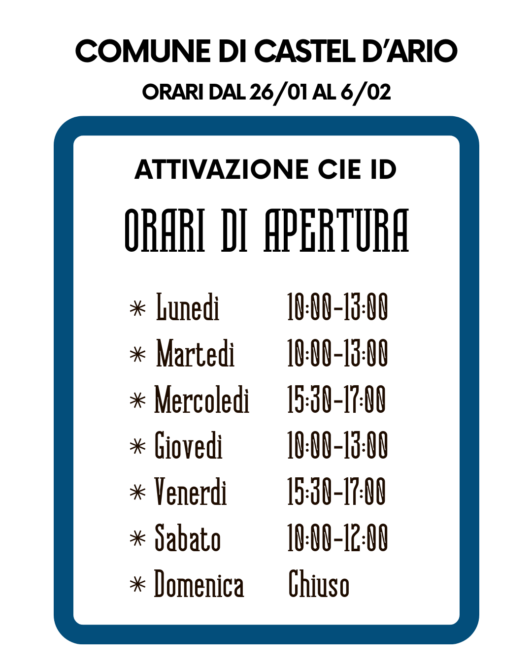 Fino al 6 febbraio, i cittadini che desiderano attivare l’accesso semplificato nell’applicazione CIE ID utilizzando la Carta d’Identità Elettronica (CIE) sono invitati a recarsi presso la porta posteriore del Comune.