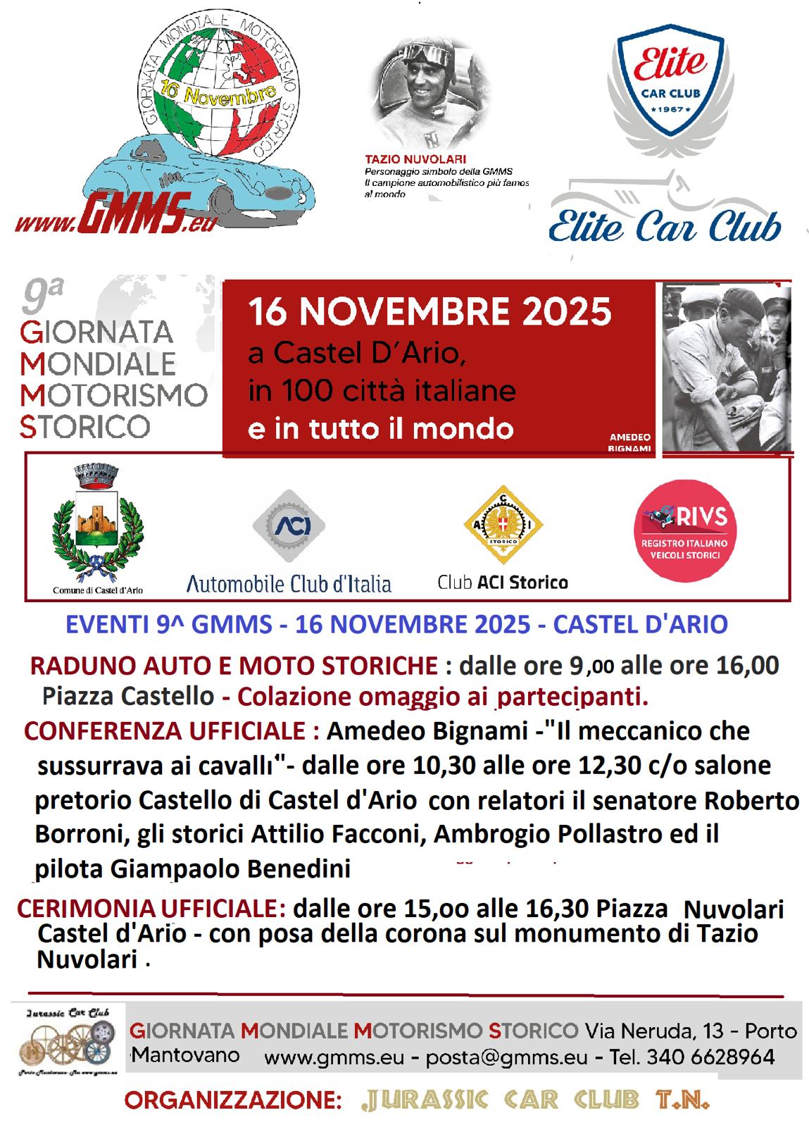 Domenica 16 novembre andrà in scena a Castel d’Ario ed in altre numerose località d’Italia, la 9^ edizione della Giornata Mondiale Del Motorismo Storico.